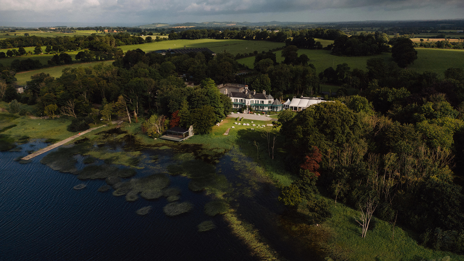 The dollhouse-like beauty of Ashley Park House makes it easy to fall in love on first glance, and it’s tough to beat for small weddings – the Main House dining room can host parties of up to 25. For a bigger bash, the glass-fronted pavilion seats up to 280 guests, and boasts beautiful views out over Lough Ourna, complimenting the chic exterior of the house. Civil ceremonies and blessings can be held in the glass extension of the pretty ceremony room overlooking the lake at this exclusive country house wedding venue.